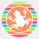 Frog; Neon Orange Pink Blue Green Stripes Classic Round Sticker