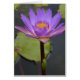 a purple lotus like a crown and a tiny green frog looking for a refuge for the night