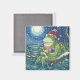 FROG ON A LOG, HOLIDAY MERRY CHRISTMAS MAGNET Squ