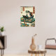 One of the most famous ukiyo-e prints of a frog is "Saru to Kaeru" (Monkey and Frog) by Katsushika Hokusai. This print shows a monkey and a frog playing together in a pond. The monkey is balancing on a lily pad, while the frog is swimming below. The print is full of humour and whimsy, and it captures the playful nature of both animals.