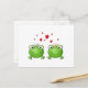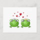 A couple of cute green frogs with red hearts. This prince frog and princess frog are on a plain white background.
