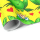 Cute green cartoon frog prince, a handsome fairy tale frog prince with romantic red hearts, gold crown with red jewels, googly blue eyes and a charming wonky smile. Happy yellow background, bright and cheerful wrapping paper for sweetheart and friendship gifts, valentine's day, birthday, anniversary, bridal shower, princess party, spring solstice celebration or anytime you please. Original frog art from Happy Wishing Well dot com.
