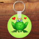 Cute green cartoon frog prince with happy red hearts, bringing bright wishes of love and hoppiness!