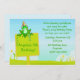 An adorable child's birthday party invitation with cute frog sitting on sign, wearing birthday hat in outdoor setting with green grass and blue sky. Suitable for girl or boy, and easy to personalise with your party details. All invitations come complete with envelopes.