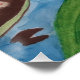 Exotic and colorful, this is an eye-catching and attractive frog and waterlilies original watercolor. The shy little frog, painted in brown and turquoise, is looking for a safe lily pad to hop to. The deep water of the pond has magnificent yellow waterlilies and rich green lily pads floating on the surface and deep brown bulrushes are growing.