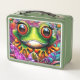 Frog Whimsical Abstract Painting Art Floral Green Metal Lunch Box