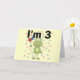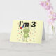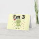 An adorable 3rd birthday design on 3rd birthday T-shirts, cards, stickers, magnets, tote bags, and more featuring a green frog with birthday balloons and text that reads "I'm 3".