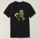 Frog holiday tshirts, mugs, cards, stickers, magnets, keychains, and other holiday apparel and gifts featuring a cute green frog with a big candy cane.