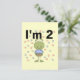 An adorable 2nd birthday design on 2nd birthday T-shirts, cards, stickers, magnets, tote bags, and more featuring a green frog holding a blue frosted cupcake and text that reads "I'm 2".