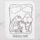 Colouring book page. Smiling frog steals an ice-cream cone with his tongue. Custom text.