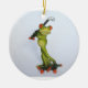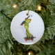 A cartoon frog playing golf decorates this funny ceramic ornament