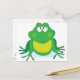 A simple outline of a smiling frog with large eyes, painted green and yellow.
