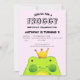 Froggy birthday boy prince First party cute green invitation. This is a beautiful and cute birthday party invitation inspired by frogs. The template is ready to use add your baby name, date, place, time, and R.S.V.P. This birthday party invitation is unique and perfect for a prince frog theme party. Get yours now!