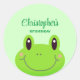 Frog kid's party supplies Cute Green Toad Froggy round sticker. This is a funny and cute birthday party item inspired by frogs. This birthday party item is perfect for a frog theme party. Click on personalise to start customising yours!