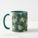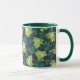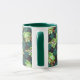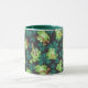 White and hunter green 11 oz. combo mug with an image of dark green shamrocks and whimsical green frogs, some just sitting, some playing the violin, and some drinking beer, on black. See matching candy jar, espresso cup, flask, pitcher, paper plate, teapot and coasters. See the entire St. Patrick's Day Mug collection in the FOOD/BEV | Dishes section.