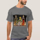I give wanted to give this a 4 instead of a 5 because these Basic DARK T0shirts run unexpectedly SLIM or Narrow. Which is great if you do not have a potbelly, but I have a paunch. It isn't the shirt's fault that I've got a beer belly. The design and shirt itself is a quality cotton shirt. The color is more of a deep purple, but still a very pretty color. The Basic DARK T-shirts run a bit SLIMMER than the Basic Ts. The neck is a fraction narrower (or seems to be narrower) also. I'm a paunchy middle-aged woman and my neck is 12 inches (31cm) thick and the neckline fell about the same as in the photo of the man, and I had the desire to tug it a bit. So if you're a thick necked man or like loose shirts, be aware these are slimmer shirts. Once I get rid of my lockdown paunch it'll look great. The shirt washed well in cold water with no apparent bleeding. We don't have a dryer, so it hung dry. Did not shrink. Love the colors and the design. The design looks smaller on my shirt than it does on the model on-line. But still, it looks good on the shirt. The printing looks as it does on the model, just the size seems fractionally smaller. Washed garment in cold water, hung dry and design appeared unaffected.