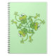 Frogs waving and having fun in a pattern design notebook