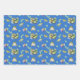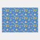 All occasion wrapping frogs on blue. The frogs are done in watercolor.