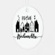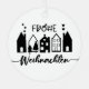 This round ceramic ornament captures the charm of a festive German village with five stylized houses adorned with stars, hearts, and a Christmas tree. The phrase “Frohe Weihnachten”—German for “Merry Christmas”—is elegantly displayed above and below the design in bold and cursive script. With its black-on-white palette and golden hanging string, this ornament brings a touch of European warmth and minimalist elegance to your holiday décor.
