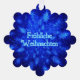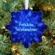A swarm of blue fractal snowflakes. German text reading "Froliche Weihnachten" appears in glowing blue and white. Add your own additional text on the reverse side.