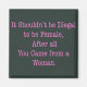 In pink text it reads: "It shouldn't be illegal to be female, after all you came from a woman."