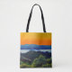 Tote features two gorgeous paintings by Sarah Orre. One side features "Lemon Drop Sky" acrylic painting of the Santa Cruz Mountains. The other side features an ocean sunset pastel painting.