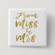 From Miss to Mrs Bridal Shower Gold Foil Script and White Background Button for a Modern and Elegant Bridal Shower.