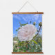The polyester fabric displayed many wrinkles and several sharp creases throughout. At the bottom of the tapestry, I noticed a bulge in the fabric because it was not pulled tight enough before being connected to the wooden boards. It took me over an hour to spay water on the tapestry before putting it on an ironing board where I used a warm iron over a polyester cloth to remove the wrinkles and creases in the material. I was able to get out the wrinkles and creases that made that tapestry look as beautiful as its picture.