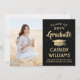 Share the joy of a high school or college graduation with these custom photo black and gold announcements. (IMAGE PLACEMENT TIP: An easy way to centre a picture exactly how you want is to crop it before uploading to the Zazzle website.) This template is simple to customise with any wording of your choice, such as party invitation details, parents' names, special honours, degree title, favourite inspirational quote, graduate's contact info, future education plans, or new job position. If there's any text not wanted simply delete it. Design features a faux gold foil mortar board cap, handwritten style script calligraphy, modern minimalist typography, and one photo of your choice, such as a senior picture or image from the commencement ceremony. Please note that gold is printed colour, not metallic foil. These elegant graduation announcement cards are a trendy and chic way to share your special day celebration with family and friends. Congratulations to the graduate!