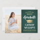 Share the joy of a high school or college graduation with these custom photo green, gold and white announcements. (IMAGE PLACEMENT TIP: An easy way to centre a picture exactly how you want is to crop it before uploading to the Zazzle website.) This template is simple to customise with any wording of your choice, such as party invitation details, parents' names, special honours, degree title, favourite inspirational quote, graduate's contact info, future education plans, or new job position. If there's any text not wanted simply delete it. Design features a green ombre background, faux gold foil mortar board cap, handwritten style script calligraphy, modern minimalist typography, and one photo of your choice, such as a senior picture or image from the commencement ceremony. Please note that gold is printed colour, not metallic foil. These elegant graduation announcement cards are a trendy and chic way to share your special day celebration with family and friends. Congratulations to the graduate!