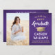 Share the joy of a high school or college graduation with these custom photo purple, gold and white announcements. (IMAGE PLACEMENT TIP: An easy way to centre a picture exactly how you want is to crop it before uploading to the Zazzle website.) This template is simple to customise with any wording of your choice, such as party invitation details, parents' names, special honours, degree title, favourite inspirational quote, graduate's contact info, future education plans, or new job position. If there's any text not wanted simply delete it. Design features a purple ombre background, faux gold foil mortar board cap, handwritten style script calligraphy, modern minimalist typography, and one photo of your choice, such as a senior picture or image from the commencement ceremony. Please note that gold is printed colour, not metallic foil. These elegant graduation announcement cards are a trendy and chic way to share your special day celebration with family and friends. Congratulations to the graduate!