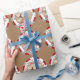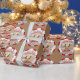 This festive custom wrapping paper features an outer frame with swirled a red and white peppermint candy cane design. The special phrase "Official Seal of the North Pole" is printed at the top. A custom name is printed at the top which you can personalise to include your own child's name or recipient. "From Santa" is printed in the bottom portion with the letters in the name "Santa" printed in a Christmas style font. Expedited Parcel is printed below over a faux gold foil background. Rudolph the reindeer antlers and red nose are printed in the back. The background features a light chestnut brown colour.