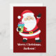 Customized red Santa Claus card for your kids Christmas. Customize your children's holiday presents to and from with their custom name under smiling Papa Noel in his jolly red Christmas suit.