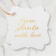 I think this must have been my fault when I ordered this heart tag. I truly thought it was ONE single tag that was around 3" across ( my mistake)...and on a good firm/thick art board, or something like that. Instead I received the product today and was just super disappointed. This was to hang on a really elegant wine bottle carrier for a wedding and instead this is not the single well crafted heart I expected...it is rather 'many very very tiny hearts....on normal white paper stock. I thought I was clear that this was a beautiful tag for an elegant wedding gift..not 20 little ( however many in the plastic bag there are) heart tags....which I suppose you could use for a bridal shower????maybe??? but they are not great..very thin and very tiny. SUPER disappointed but I have no time to return...I have to use two of these teensy tags ....it's just not non-plus. But again...maybe it was my mistake with the understanding of the measurements. The design is lovely...the tags themselves ARE NOT. If you need many, many many little tiny tags...maybe it will work for you...but otherwise...save your money. Not worth it. At all. The printing quality was good. It is the quality of the tag itself and absurdly tiny size of the tags.