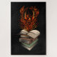 Original design of a phoenix bird coming out of a stack of books. Created with pencils, pens and coloured in vector.