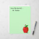 Easily personalise this custom letterhead stationery From The Desk Of... with any name. Or, just leave out the text entirely. One red apple with green leaf illustration on the bottom corner. Lots of copy space to write on later. Background shown is a light green which can easily be changed. Just click on customise, and then click on "colours" to change it. Great personal gift idea for teachers, doctors, nurses, health nuts, etc.