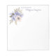 Personalize this FROM THE DESK OF notepad with an elegant floral bouquet of pink & blue flowers and green leaves against a white background.