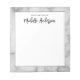 The notepad has an elegant faux white marble border. At the top of the white writing area, there's black text that can be edited or deleted to create a custom message. (Shown: FROM THE DESK OF Michelle Anderson). The line for the name is an elegant script that looks like a cursive signature.