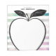 This teacher note pad features a black and white drawing of an apple on a multicolored watercolor striped background. Personalize with the teacher's name.