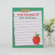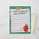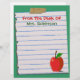 Personalise this custom letterhead, "From The Desk Of", with any name on this fun, torn, lined notebook paper taped to a green background with a red apple illustration on the bottom. Or, just leave out the text entirely. Easily change the background colour and text style and colour. Just click on customise, and then click on "colours" to change them. Makes a great custom, fun, and useful gift for those special teachers in your life. Personalise some today!