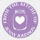 From the kitchen of vintage mason jar stickers with purple polka dots pattern. Personalised party favour name tags with custom message. Elegant round polkadots design with love heart symbol in rustic jar. Stylish typography template. Add your own name and / or family surname. Cute country chic round DIY labels or seals for home made cooking and baking products like cookies, sweets, cake, cupcakes, Christmas Holiday treats etc.