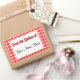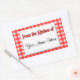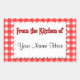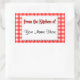 Retro country red and white plaid pattern of checks and stripes on customisable stickers reading From the Kitchen of in retro red and black letters, with script letters for your name on a faux doily. Customise it to change fonts or sizing, add fields or change background colours or label shape, even save your design for later.
