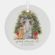 A Christmas Holiday Ornament with beautiful watercolor door, wreaths, bows and a cute golden retriever dog - Holiday decorations from Ricaso - add your own text
