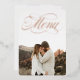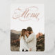 Gorgeous, elegant menu features a favourite photo and real foil "menu" headline on the front. Your choice of gold, silver or rose gold. Use the back to layout your wedding menu (no foil on back).
