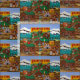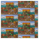 The fabric image is taken from an original painting called "Frontier Town" by International Artist Jennifer Lake. Vintage toys, trains, iron toys can be seen and even cowboys whooping it up. Any little cowboy or cowgirl would love this fabric to decorate their bedrooms.