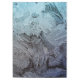Blue and white window frost ice crystals captured in a late winter photograph.