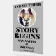 Glamourous elegant frosted acrylic story begins wedding welcome sign. Use the online template tools to add your own photo. THE SAMPLE PHOTO IS NOT INCLUDED. REPLACE WITH YOUR OWN PHOTO BEFORE ORDERING. Designs are flat printed illustrations/graphics.