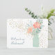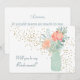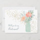 A whimsical blue green frosted image mason jar holds pastel orange and coral flowers with soft teal greenery on the front of this pretty bridesmaid invitation card. A background of gold confetti flecks add interest and contrast to the delicate flowers. Your custom text is in darker teal. The back of the invitation is white, with your custom text in teal. Make it say whatever you'd like! *This design uses artwork from LABFcreations on Etsy.