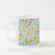 A pretty Frosted Glass Mug with a pattern of Golden Butterflies, handpainted in watercolour by Judy Adamson, on a sky blue background. This design will also fit the frosted glass Beer Mug.