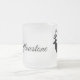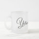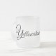 This frosted glass mug is shown with a art print of a deer with Yellowstone text.